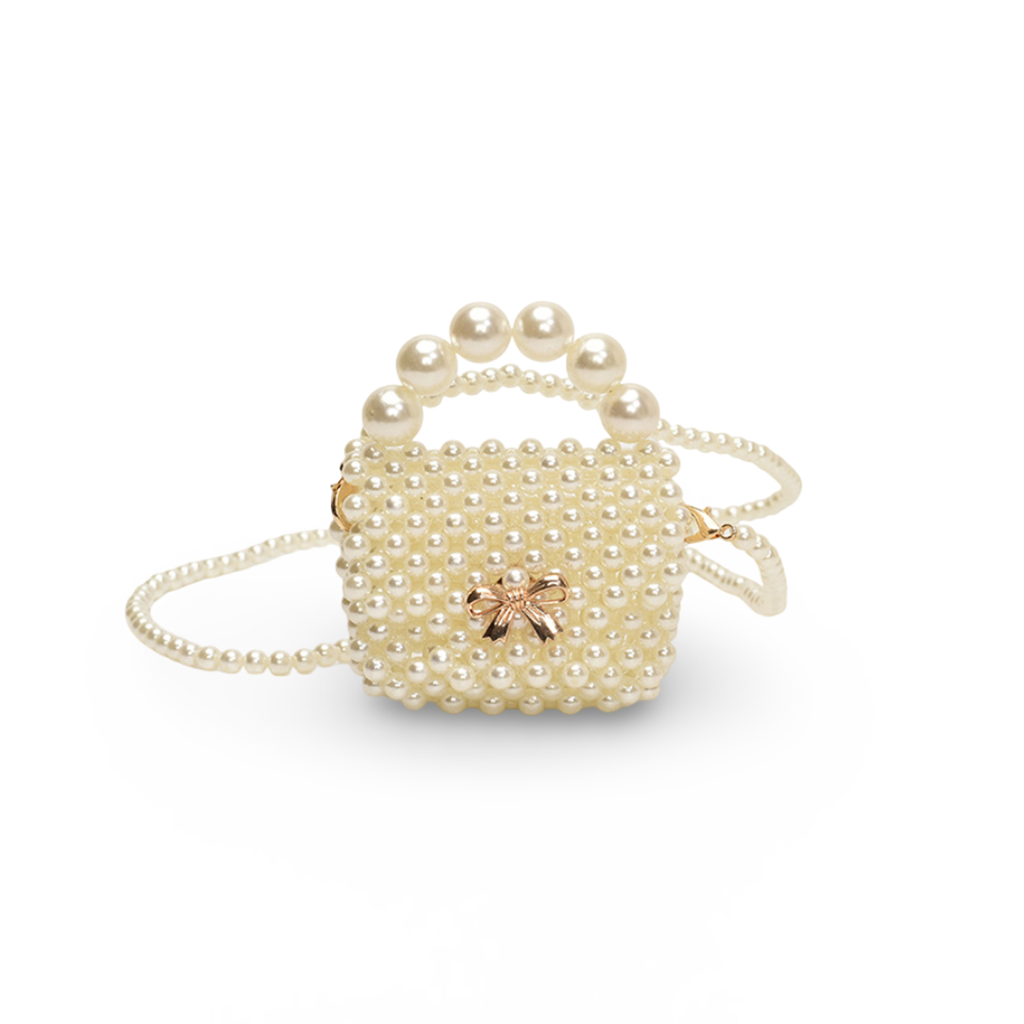This Pearl Embellished Mini Handle Bag features an all-over pearl design that creates an elegant and luxurious look. The compact, rounded shape combined with delicate pearl details makes it a standout accessory for refined and feminine styles.